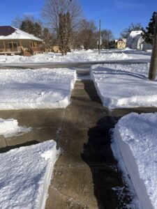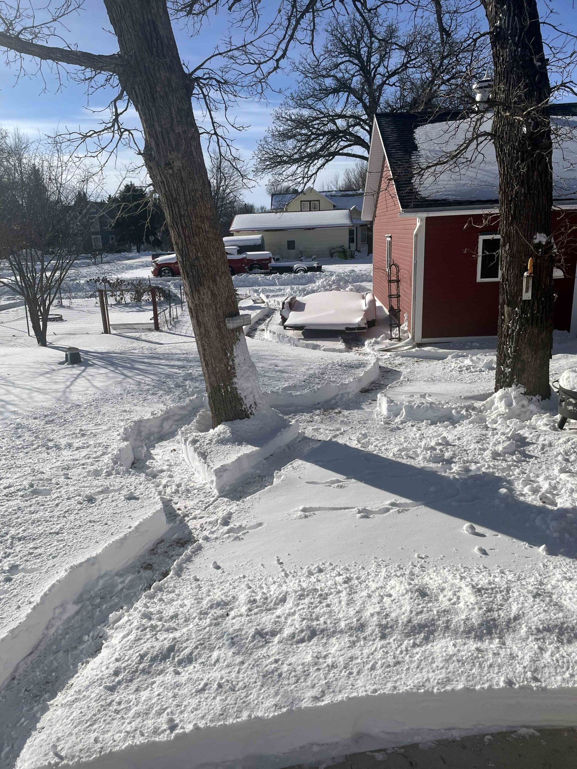 These shots, taken this morning, shows portions of the cleared sidewalks and “cat paths” around the yard.